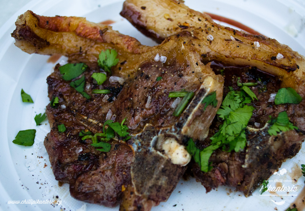 Když máte gril pořádně rozpálený, osolte a opepřete kotlety. V závislosti na tloušťce masa je grilujte 3-4 minuty z každé strany. Tuk by se vám měl krásně vypéct a maso musí jít jednoduše oddělit od kosti.
