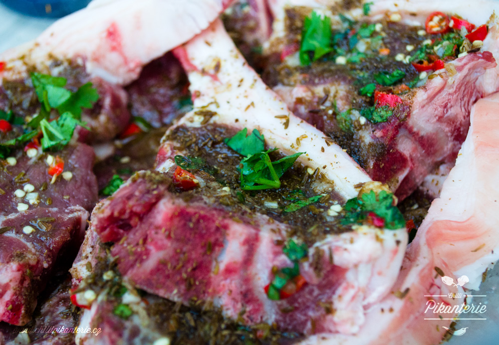 Jehněčí kotlety omyjte, osušte, každou důkladně potřete marinádou a nechte v lednici marinovat než se vám rozpálí gril.