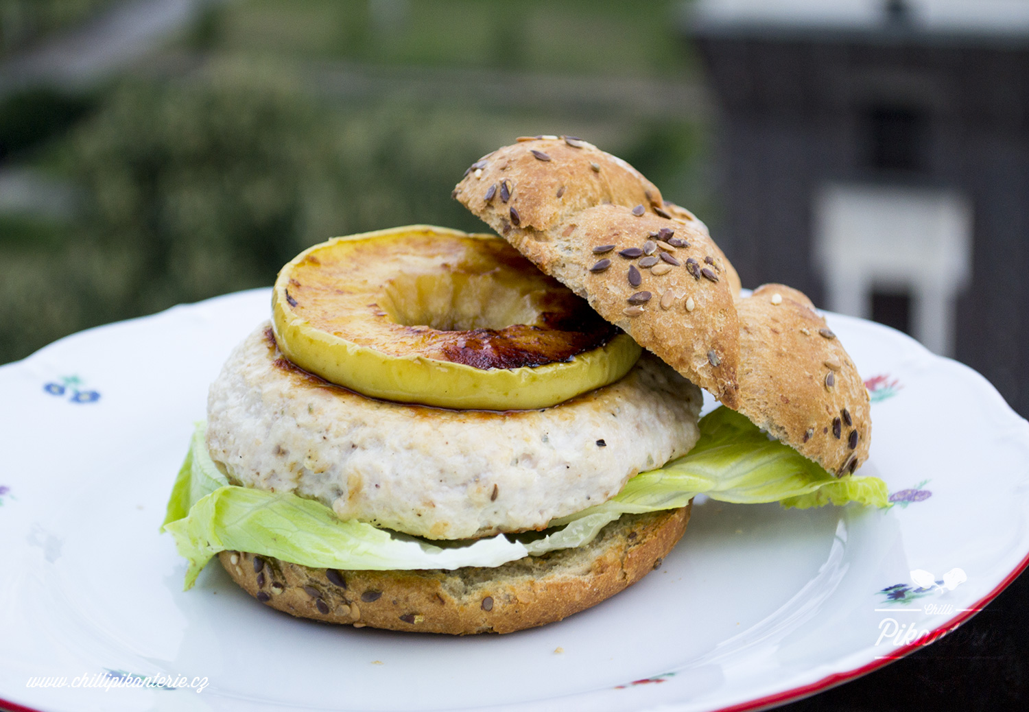 Na závěr na grilu ještě krátce opečeme housky, do nichž následně navršíme ledový salát, maso, plátek jablka a ihned podáváme. Dobrou chuť!