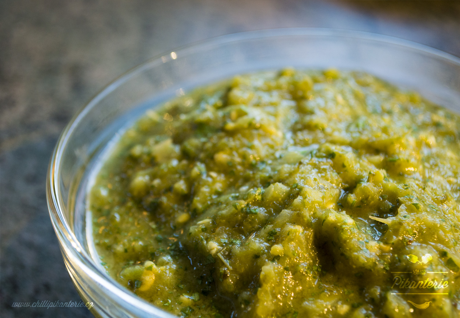 Máte na zahrádce spoustu nezralých, zelených rajčat? Neváhejte jich pár otrhat a udělat si tuhle špičkovou salsu třeba k hovězímu steaku, ke kterému je její lehká, pikantně nakyslá, osvěžující chuť přímo božským doplňkem. Ideální je ale téměř ke každému masu a třeba i k tortillovým chipsům.
