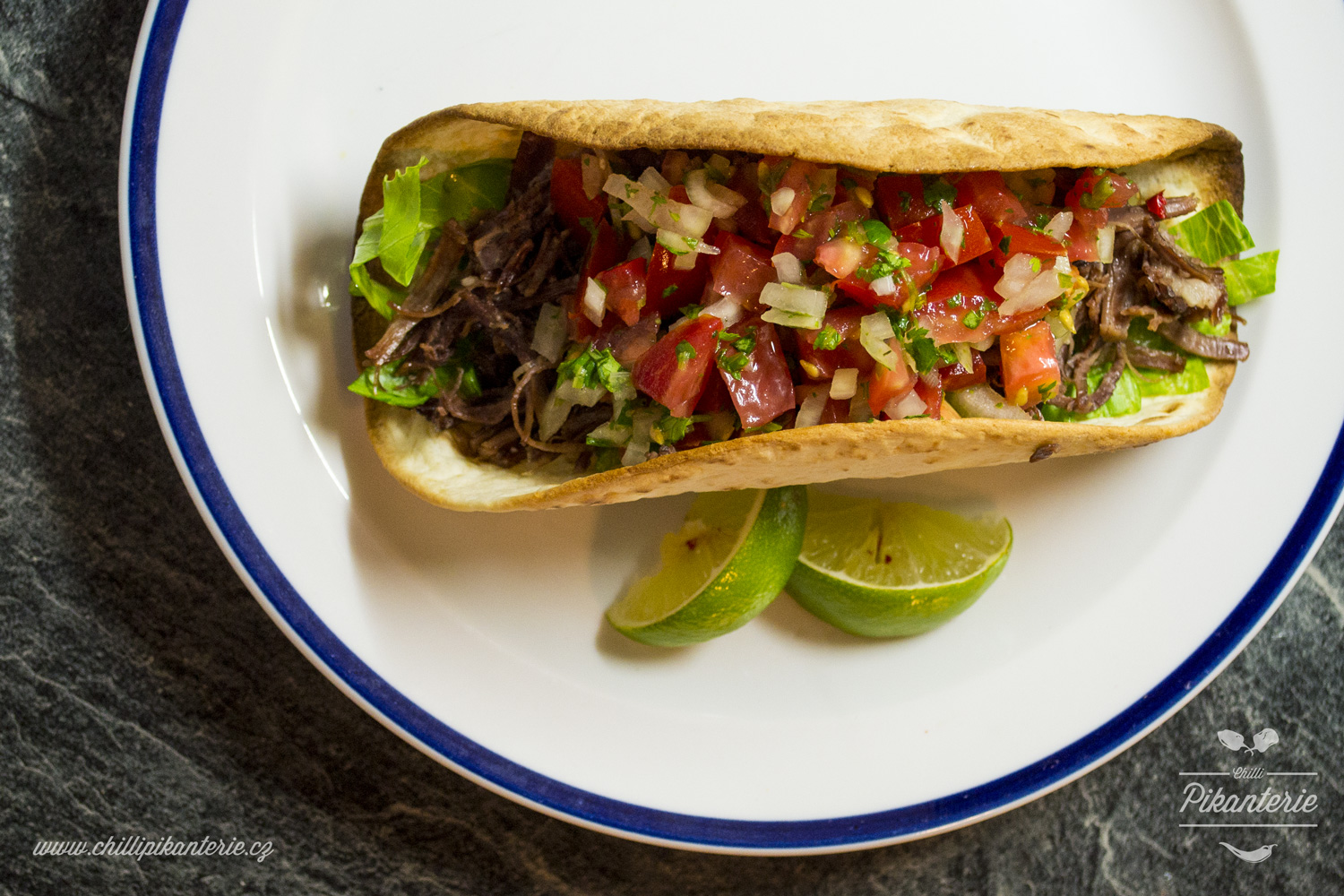 Taky máte tak rádi taková ta malá jídla, která se vejdou přesně ruky a do kterých se můžete prostě jen tak bez příboru zakousnout? Přesně takové jsou Tacos, jejich kouzlo spočívá v jednoduchosti přípravy, kterou určila ulice a geniálním propojením chutí všech těch báječných ingrediencí. Jsou to zkrátka malé tortily naplněné lahodný trhaným hovězím, dekorované delikátní salsou pico de gallo, po kterých se pokaždé doslova zapráší. Pokud navíc přidáte do masa nějakou super ovocnou, peprnou chilli papričku, je úspěch zaručen, alespoň u nás tomu tak je :).