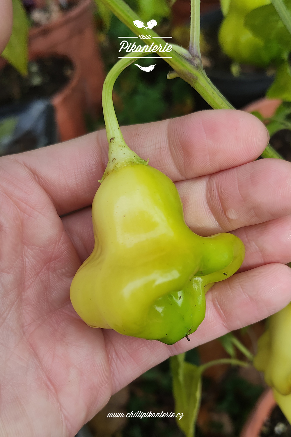 Aji White Fantasy je podle nás jednou z nejchutnějších jemných chilli papriček, které jsme kdy pěstovali. Tato bílá varianta Aji Fantasy pochází z Finska. Má krásně sladkou chuť, ale je méně pálivá a v chuti najdete více výraznější citrusových tónů než u původní Aji Fantasy. Papriky mají netradiční tvar malých kloboučků a po úplném zrání mají krémově bílou až světle žlutou barvu. Díky svému jemnému palu jsou papričky Aji White Fantasy ideální k přímé konzumaci nebo zpracování pokrmů za čerstva. Hodí se k bílým masům, lehkým jídlům a do zeleninových salátů.