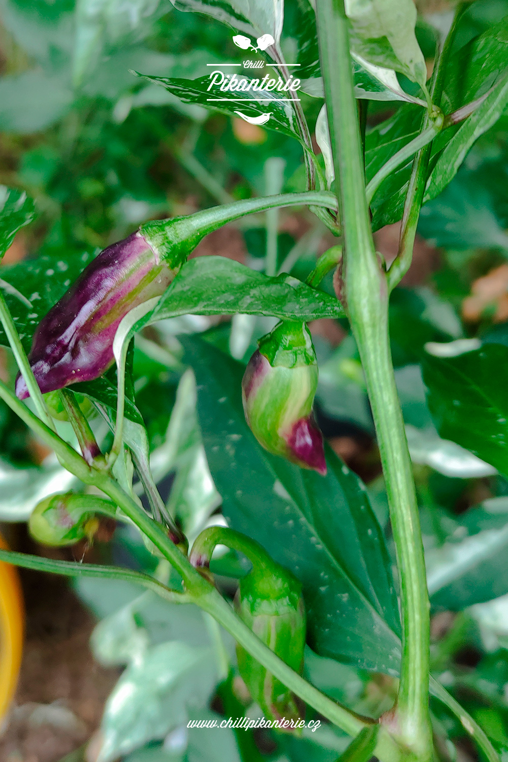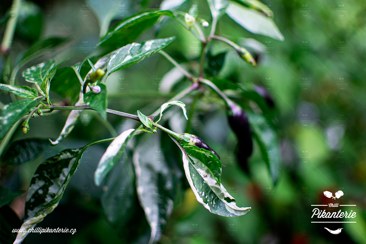 Krásná a rychle zrající paprička z jižní Ameriky. Papriky jsou rozumně ostré a z temně fialové barevnost postupuje přes zelenou až do sytě červené. V průběhu zrání se na papričkách objevují krásně barevné pruhy. Rostlinka má panašované i listy v bílých, zelených a fialových odstínech.