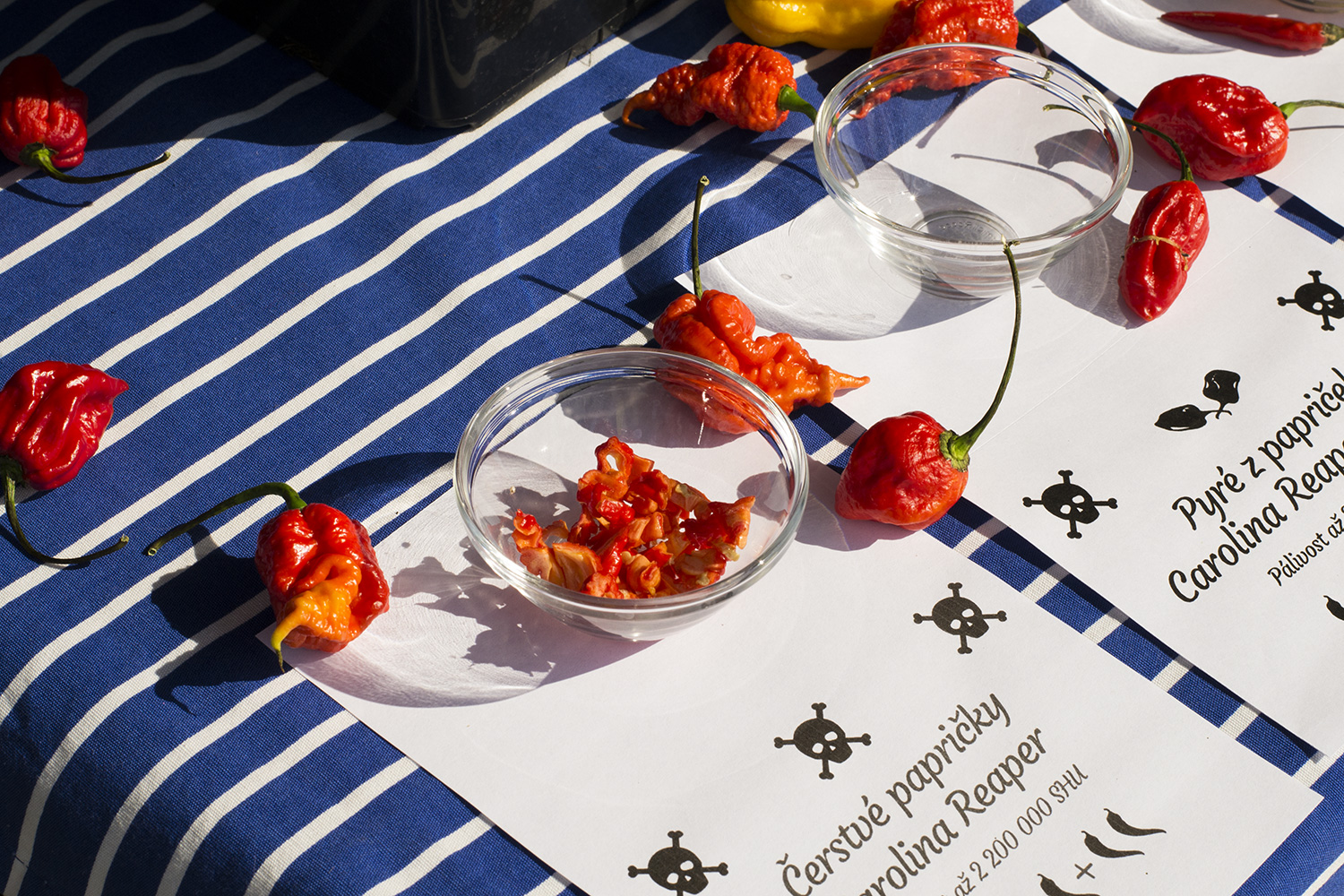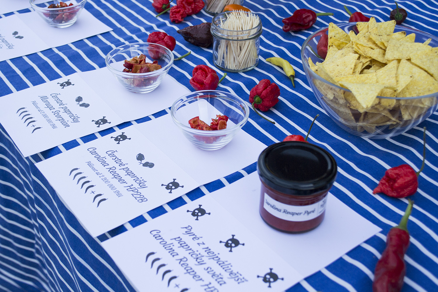 V červnu jsme se účastnili větší a hodně uvolněné letní akce ČMSS s názvem SUMMER HAPPENING. Celá plážová party se konala za teplého letního večera pod taktovkou Event Areny v příjemném neformálním prostředí pražských Žlutých Lázní. Večírek provázeli drinky s paraplíčkem, slamáky, smích, písek a naše chilli dobroty. Náš stánek byl jedním ze soutěžních stanovišť, které museli hosté absolvovat, aby získali důležité razítko a tím se přiblížili k hodnotné ceně. Musíme ale konstatovat, že jsme byli více než mile překvapeni, že se většina hostů do degustování těch nejpálivějších laskomin hrdinně vrhala zcela sama, bez donucení. V ochutnávání se favoritkou stala naše sezónní jahodová omáčka a jak jinak než Carolina Reaper Pyré. Mléko z našeho baru poslední záchrany se popíjelo kupodivu jen sem tam a spíše pro jistou. Za nás opět hodně fajn večer plný povídání, ochutnávání a příjemných lidí.