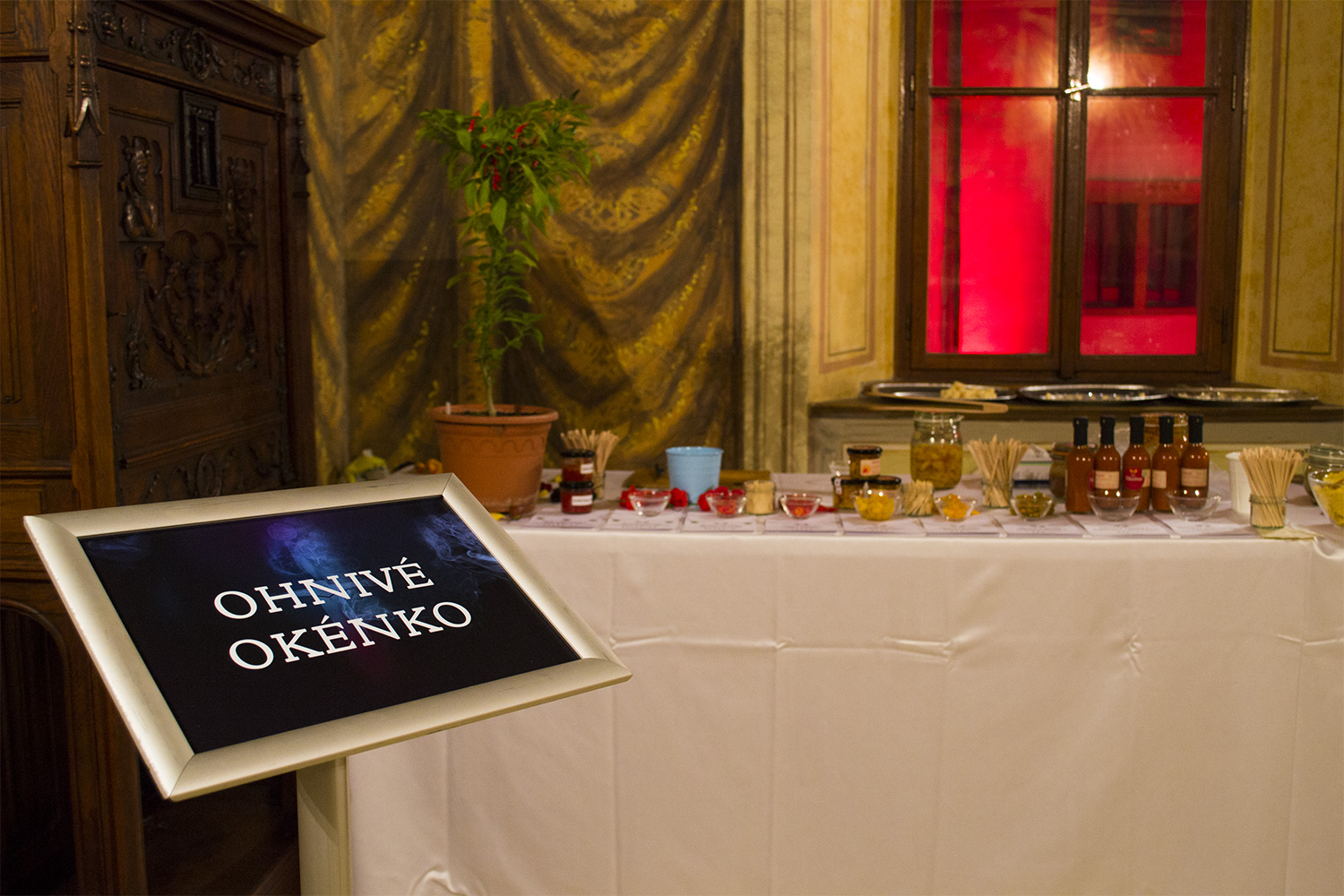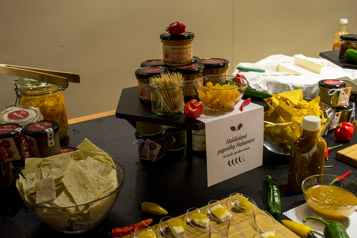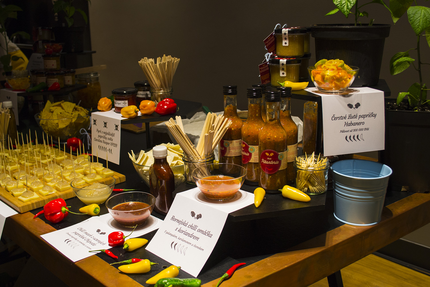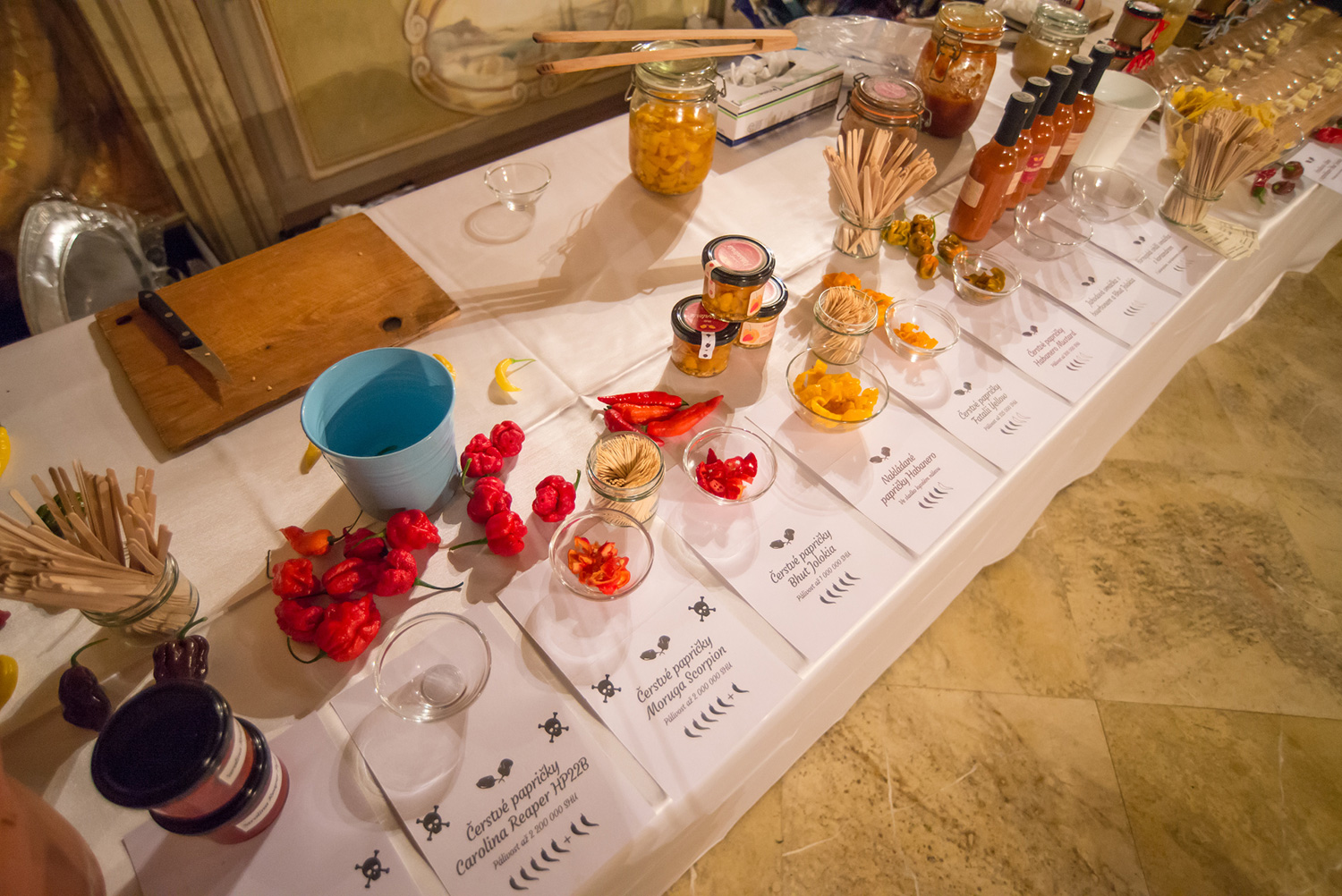 Říjen byl pro nás ve znamení seriálu Hra o trůny. Ten byl totiž tématem slavnostního večera společnosti eD´systém Czech a.s., který se konal v překrásných prostorách Martinického paláce nedaleko Pražského Hradu. Vše pořádala eventová agentura ORANGE, jež nás přizvala k účasti. Na nás bylo tedy hostům večer řádně vyostřit našimi pikantními produkty, které jsme jim naservírovali společně se sýry, tortilami apod. V průběhu akce byly k ochutnání jak méně tak více pálivé varianty džemů, omáček či nakládaných specialit, přičemž to opravdu nejpálivější jsme nabízeli zásadně na výslovné přání. Nešetřili jsme ani čerstvými chilli papričkami z vlastního skleníku, které byly díky vrcholu pěstitelské sezóny k dispozici v hojném množství. Testovat se proto mohly i odrůdy, které se v obchodě běžně neseženou. V rámci večera jsme jako bonus na hlavním pódiu zorganizovali pro pět nejodvážnějších soutěž v pojídání chilli. Soutěžící byli nesmírně odvážní a byli odměněni jak fanděním a potleskem publika, tak i věcnými cenami. Celá akce byla skutečně velmi povedená a nás hodně potěšilo, jak obrovský byl opět o chilli zájem.