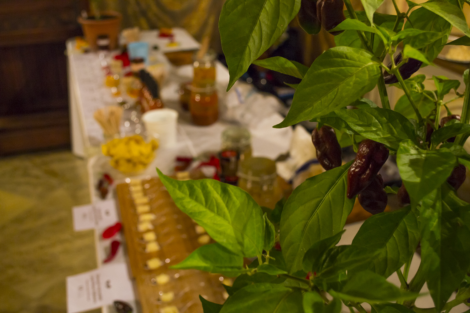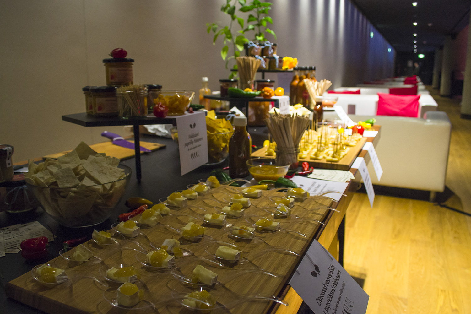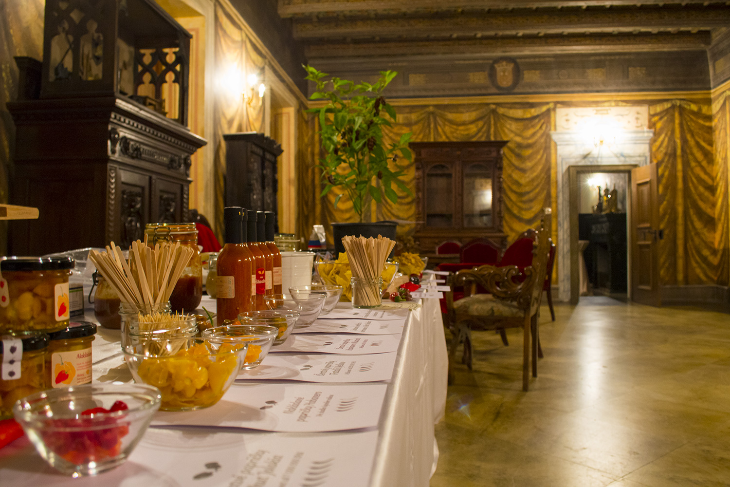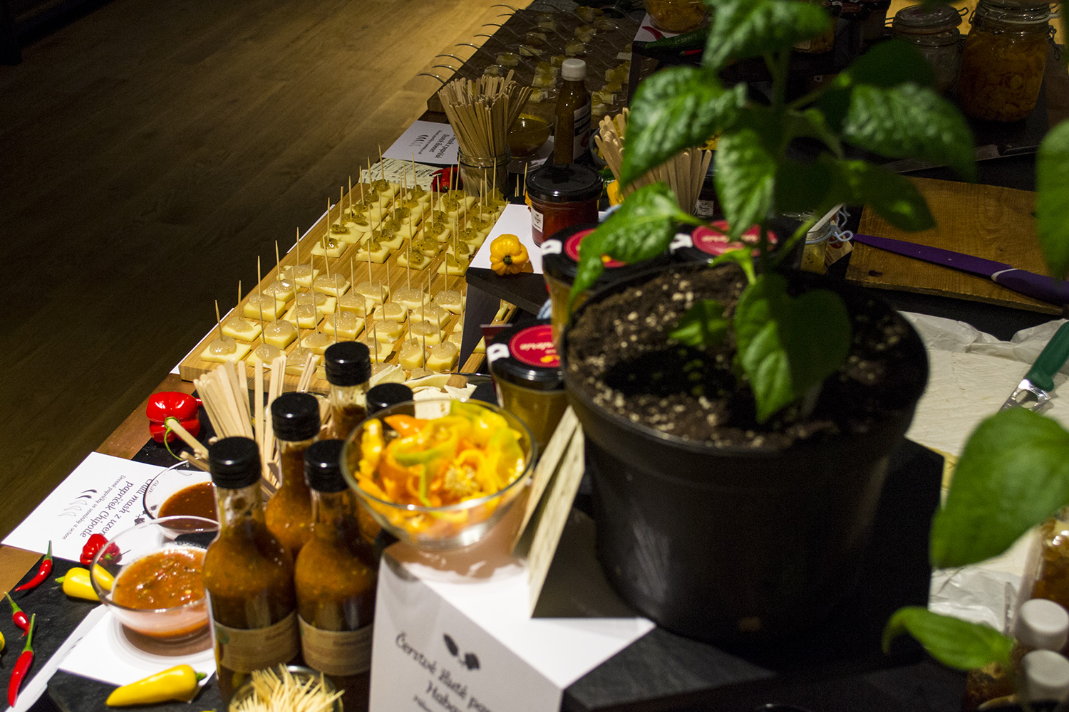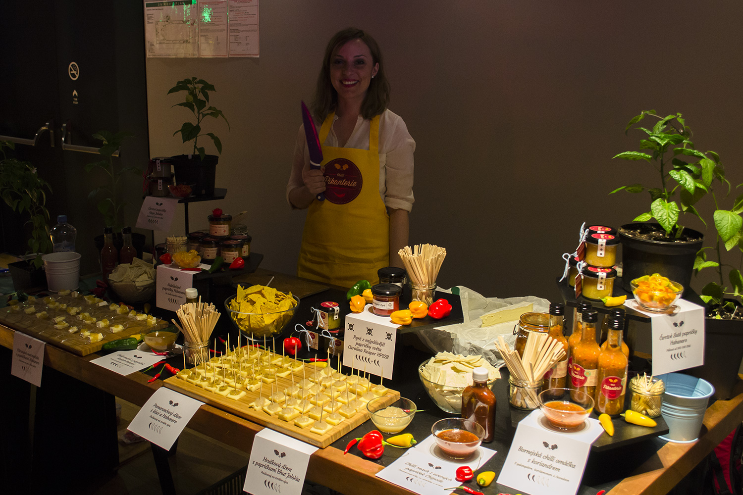Říjen byl pro nás ve znamení seriálu Hra o trůny. Ten byl totiž tématem slavnostního večera společnosti eD´systém Czech a.s., který se konal v překrásných prostorách Martinického paláce nedaleko Pražského Hradu. Vše pořádala eventová agentura ORANGE, jež nás přizvala k účasti. Na nás bylo tedy hostům večer řádně vyostřit našimi pikantními produkty, které jsme jim naservírovali společně se sýry, tortilami apod. V průběhu akce byly k ochutnání jak méně tak více pálivé varianty džemů, omáček či nakládaných specialit, přičemž to opravdu nejpálivější jsme nabízeli zásadně na výslovné přání. Nešetřili jsme ani čerstvými chilli papričkami z vlastního skleníku, které byly díky vrcholu pěstitelské sezóny k dispozici v hojném množství. Testovat se proto mohly i odrůdy, které se v obchodě běžně neseženou. V rámci večera jsme jako bonus na hlavním pódiu zorganizovali pro pět nejodvážnějších soutěž v pojídání chilli. Soutěžící byli nesmírně odvážní a byli odměněni jak fanděním a potleskem publika, tak i věcnými cenami. Celá akce byla skutečně velmi povedená a nás hodně potěšilo, jak obrovský byl opět o chilli zájem.