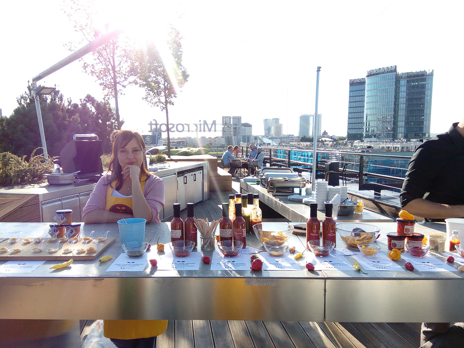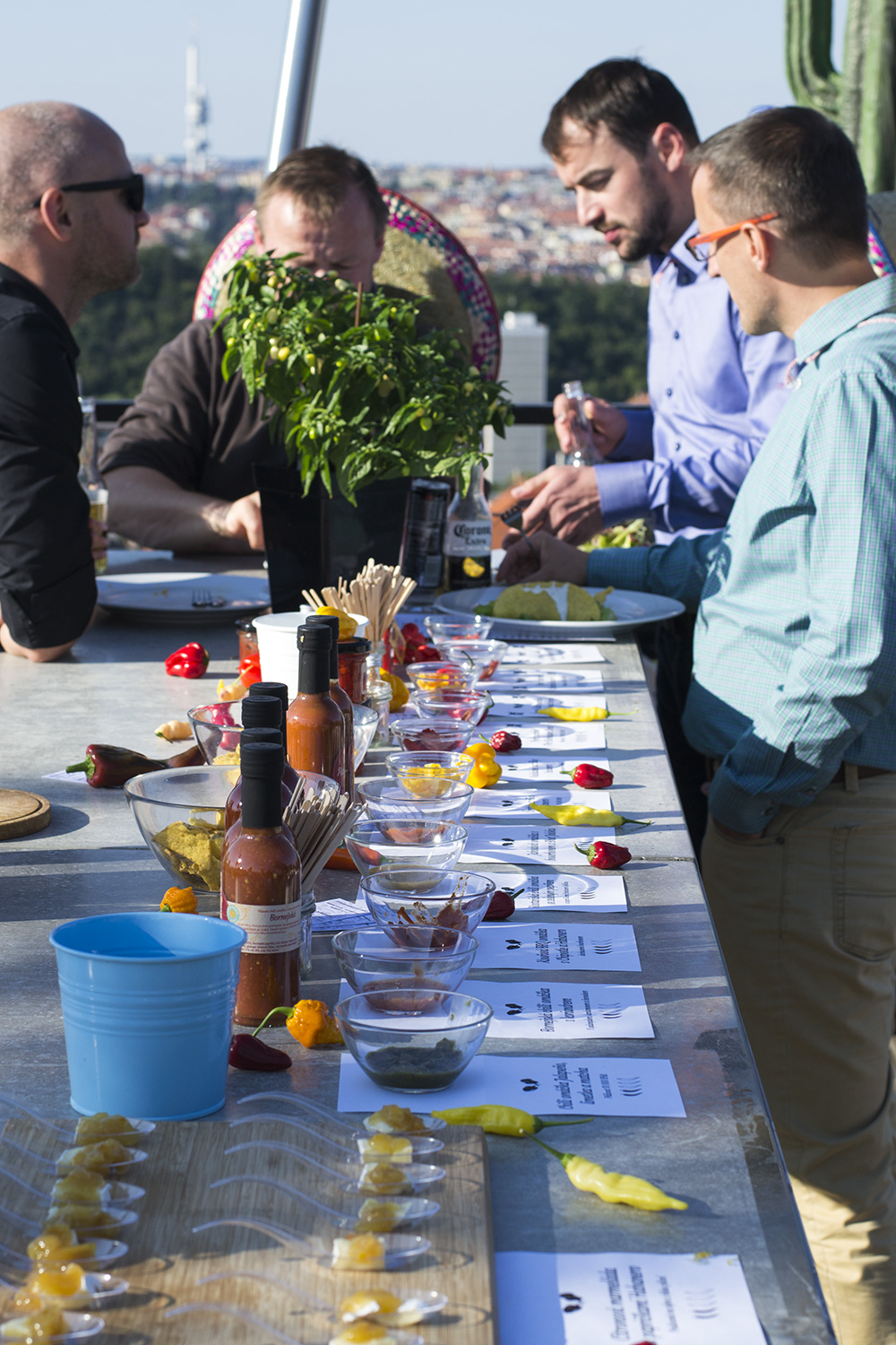 Hodně nás baví menší akce, protože na je na nich často větší prostor pro testování a příjemné povídání. Důkazem byla odpolední, komorní mexická party pro společnost Microsoft, která se konala v sídle společnosti přímo na jejich úchvatné terase. Během celého odpoledne panovala přátelská atmosféra, během níž se o chilli živě diskutovalo, a navíc se grilovaly šťavnaté steaky ke kterým se podávali jak jinak než naše ostré omáčky a pyré. Jako dezert jsme připravili naše jemně pikantní džemy a marmelády. Hosté se nebáli a spousta si z Caroliny Reaper absolutně nic nedělala a ochutnala ji. Milí Microsofťaci, díky, tohle odpoledne se povedlo jedna radost. Akce byla organizována ve spolupráci Event Arenou.